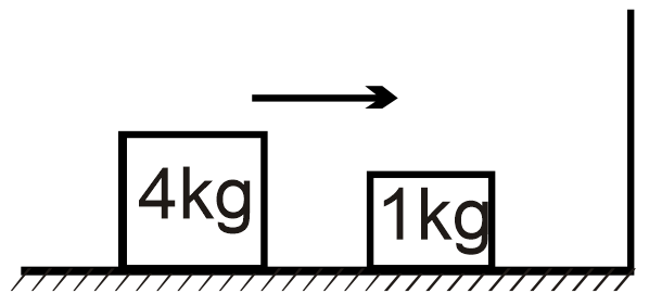 A 4 kg mass is projected towards 1 kg mass with a velocity 10 m/s. All collisions are elastic and all surfaces are smooth. How many total collisions occur between the two blocks?