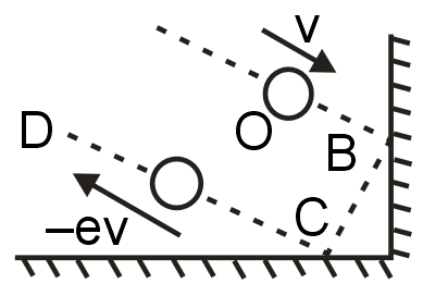 After rebound at C the y component is multiplied by e and the x component is unchanged