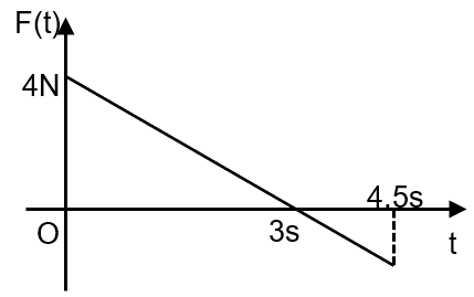 A block of mass 2 kg is free to move along the x-axis. It is at rest and from t = 0 onwards it is subjected to a time-dependent force F(t) in the x direction. The force F(t) varies with t as shown in the figure. The kinetic energy of the block after 4.5 seconds is