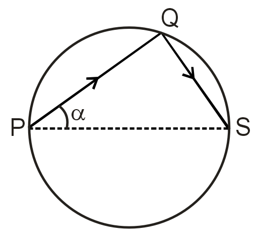 A body is fired from point P and strikes at Q inside a smooth circular wall as shown in the figure. It rebounds to point S (diametrically opposite to P). The coefficient of restitution will be
