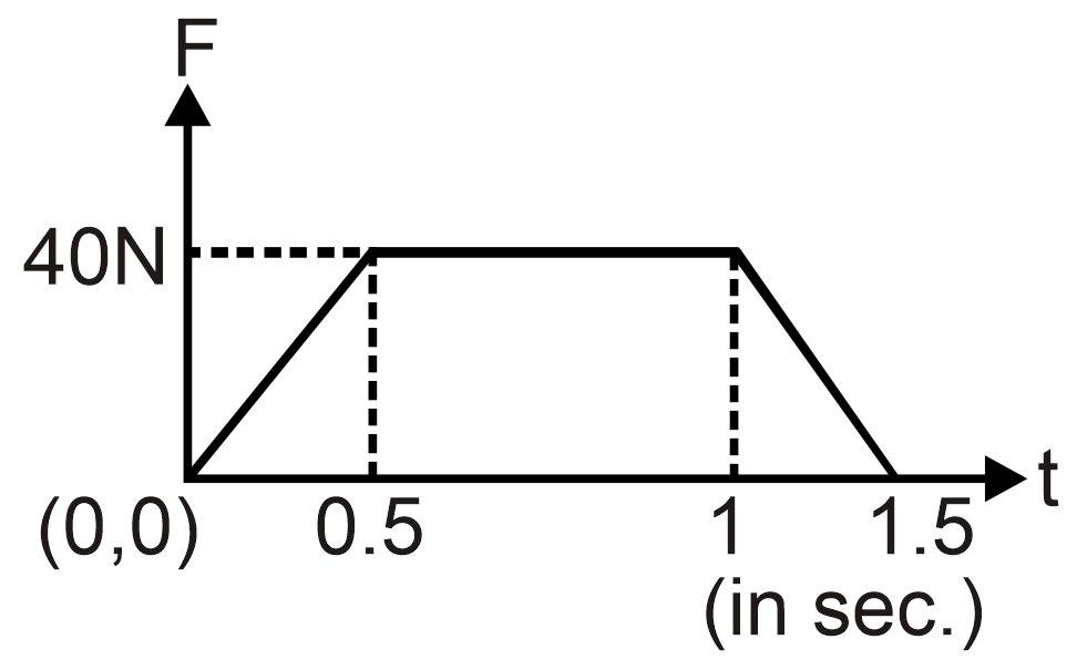 A body of mass m = 4kg moving with a velocity 10 m/s collides elastically head-on with another stationary object for 1.5 sec. The impulsive force versus time graph is shown during the collision of the body and object. Find the mass object in kg.