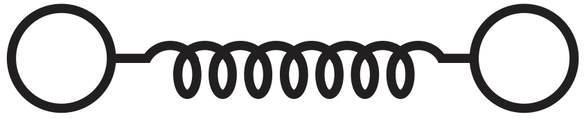 A classical model of a diatomic molecule is a springy dumbbell, as shown, where the dumbbell is free to rotate about axes perpendicular to the spring. At high temperature when vibrational degree of freedom is excited, the specific heat per mole at constant volume, is