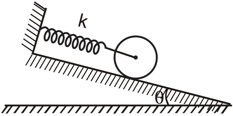 A disc of mass 'm' is connected to an ideal spring of force constant 'k'. If disc is released from rest. What is maximum friction force on disc during subsequent motion. Assuming friction is sufficient for pure rolling. Take : mass of disc = 1 kg, Radius of disc = 10 cm, Angle of incline = 37°.