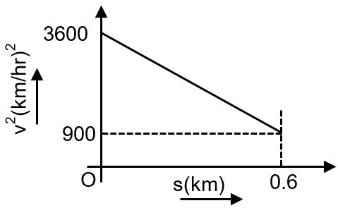 A graph between the square of the velocity of a particle and the distance s moved by the particle is shown in the figure. The acceleration of the particle in kilometer per hour square is: