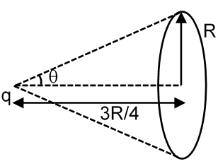 A point charge q is placed on the axis of a fixed ring of radius R so that the point charge is at a distance 3R/4 from the center of the ring. The electric flux through the ring due to the charge q is . Fill 10 n.