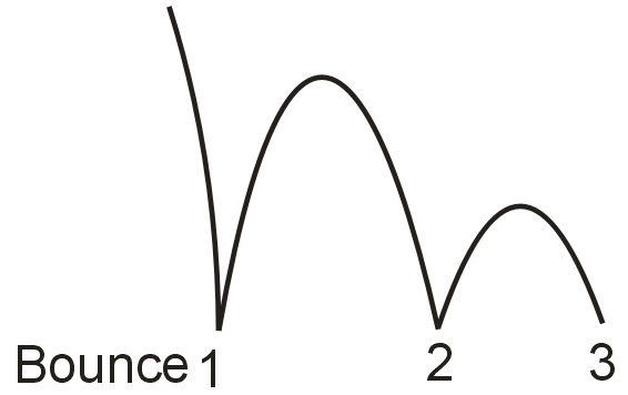 Given the time between the first and second bounce is 1 second, the time between the second and third bounce is .