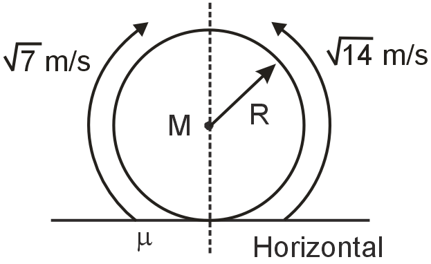 A solid sphere of mass M and radius R is kept on a rough surface. The velocities of air (density ρ) around the sphere are as shown in figure. Assuming R to be small and M = , what is the minimum value of coefficient of friction so that the sphere starts pure rolling? (Assume force due to pressure difference is acting on centre of mass of the sphere)