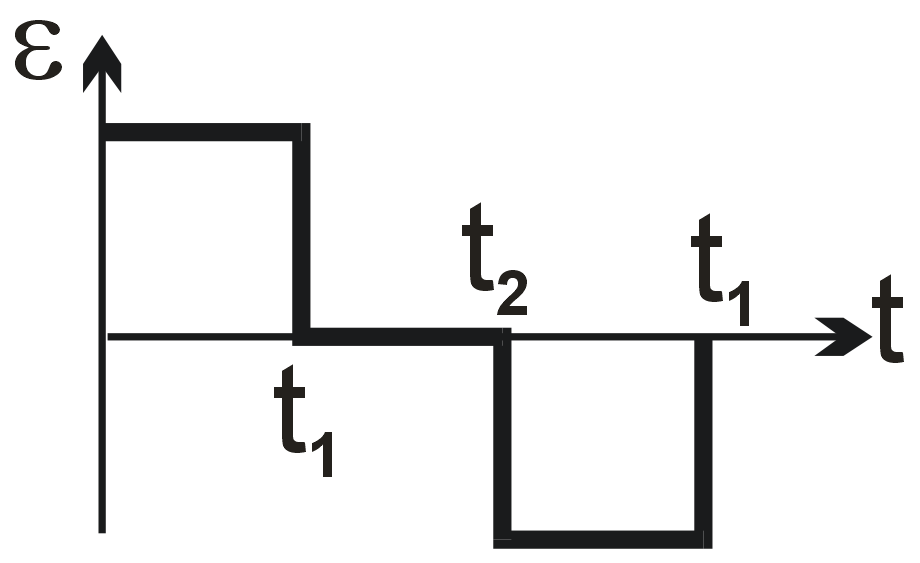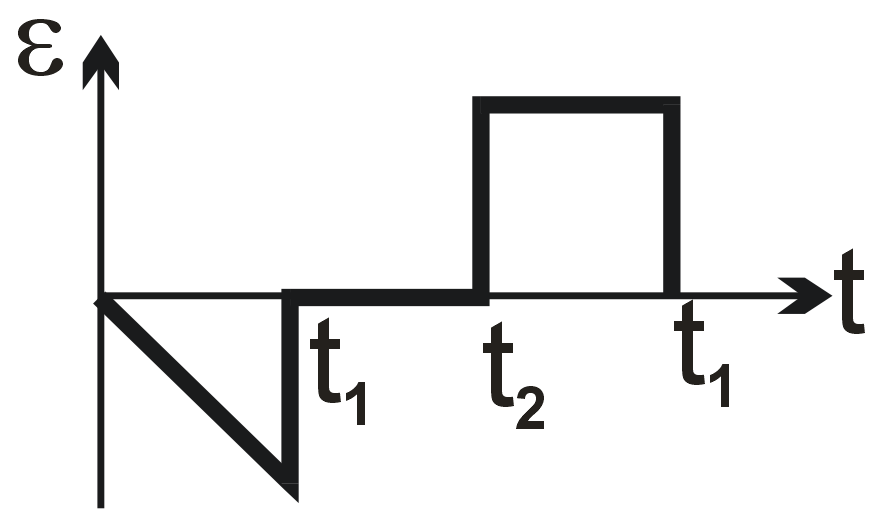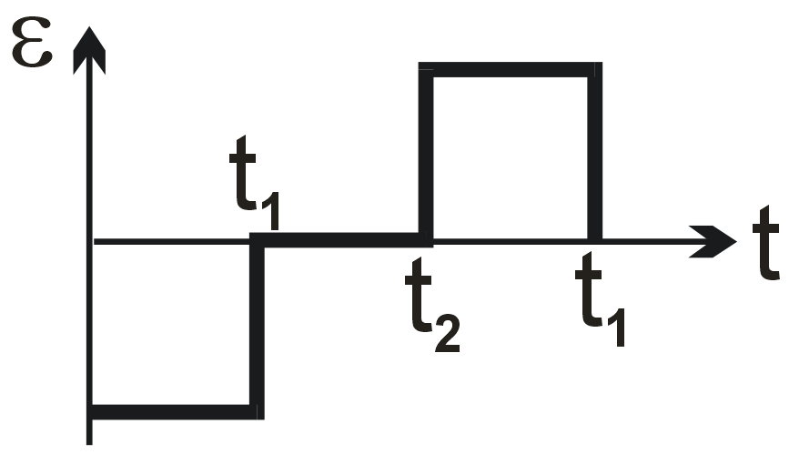 Final Answer: The second graph option (square wave centered on time axis, negative first then positive).