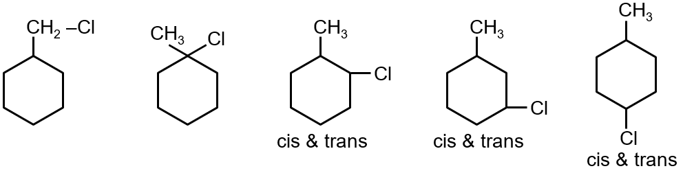 How many possible monochloro products (without counting mirror images) are formed when methyl cyclohexane is treated with Cl2 in presence of sunlight?