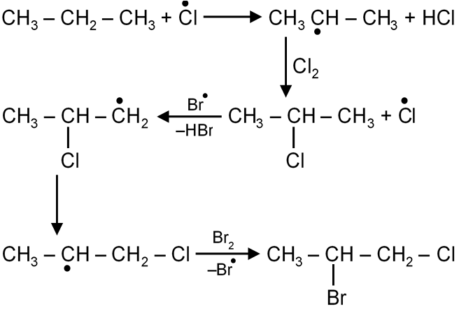 Alkanes are halogenated in presence of sunlight. The reaction follows free radical mechanism which completes in three steps.