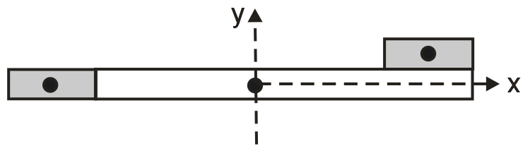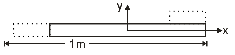 First 10 cm piece of a uniform meter stick is cut and kept on the other end as shown in figure. Find the shift in the x - coordinate of the centre of mass.