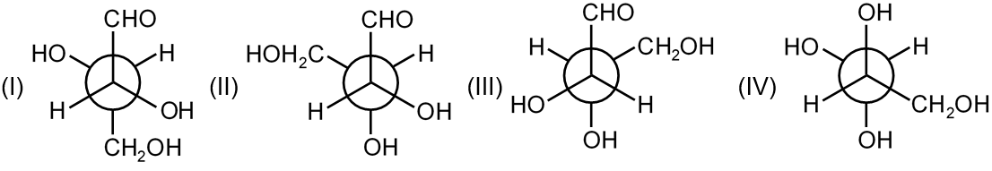 Four Newman projection formula of compound CH2OH–CHOH–CHOH–CHO are shown below: