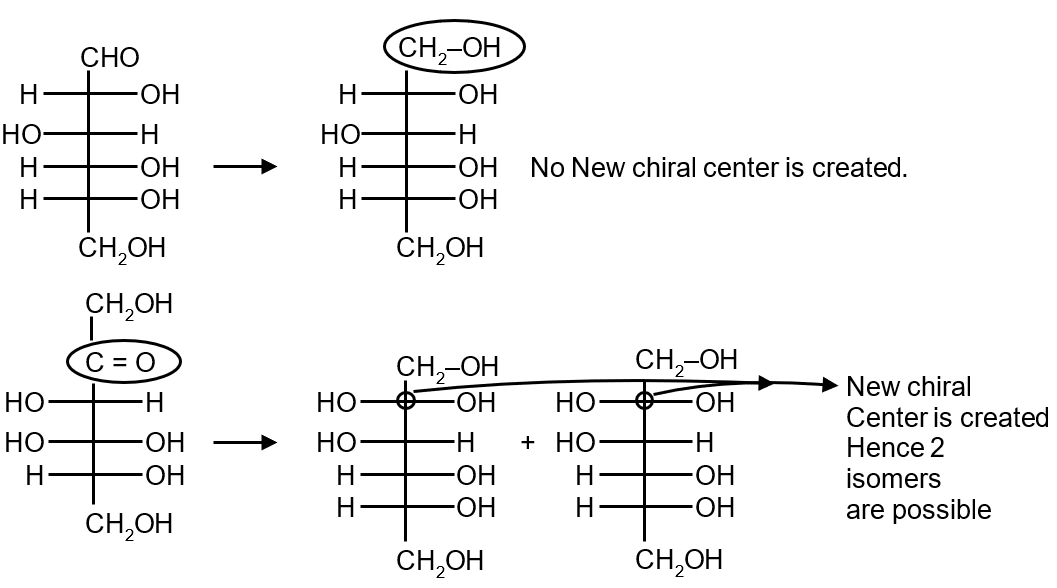 How many products are produced respectively when optically pure glucose and fructose are reduced one by one by NaBH4.