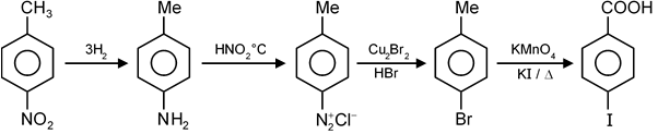 Iodination of benzene is not easily caried out. How can one prepare para-iodobenzoic acid from para-nitrotoluene?