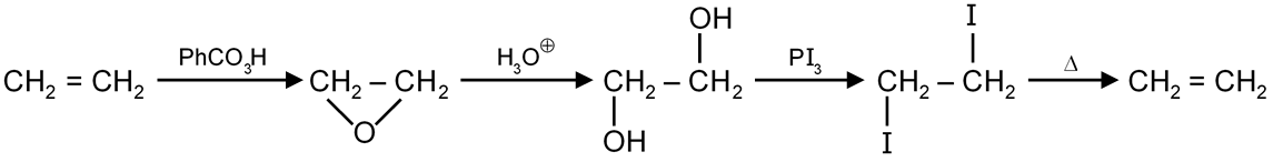 CH2=CH2→PhCO3HA→H3O⊕B→PI3,Δ(2 eq)C Structure of 'C' is