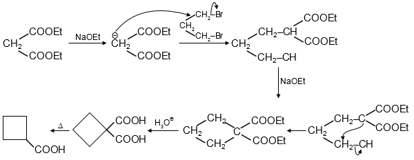 CH2(COOEt)2+(CH2)3Br→NaO EtEtOHI→H3O+ΔII