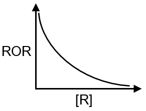 | (T) Graph of rate of reaction vs [R] for a (–1) order reaction. |