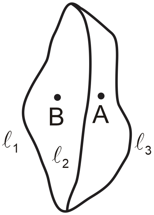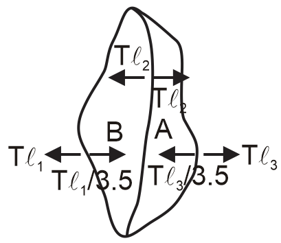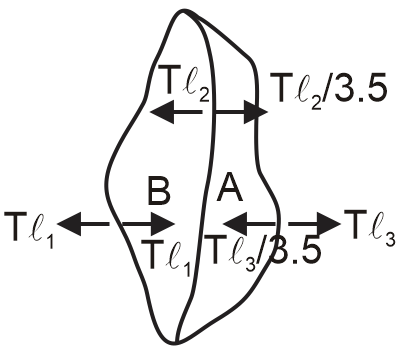 On the surface of water we drop three pieces of thread which are linked to each other as shown in the figure. The threads do not sink but remain on the water surface. (ℓ2 = ℓ3 = π cm, ℓ1 = 2π cm)