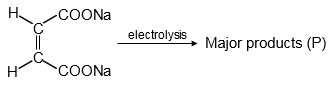 The image shows a chemical structure with a triple bond between two carbon atoms, indicating an alkyne. The compound is propyne, CH₃C≡CH. The terminal alkyne (≡C-H) is acidic and can be deprotonated by strong bases like NaNH₂ to form the acetylide anion. This anion reacts with alkyl halides via SN2 substitution to form longer alkynes. The product P is butyne, specifically 1-butyne: HC≡C-CH₂-CH₃.