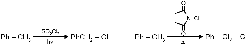 Ph–CH3 → PhCH2–Cl This conversion can be done by :