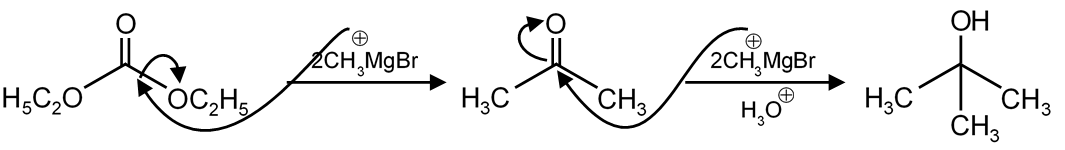 further react with CH3MgBr/H3O+ to give t-butyl alcohol