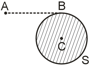S is a solid neutral conducting sphere. A point charge q of 1 × 10–6C is placed at point A. C is the centre of sphere and AB is a tangent. BC = 3m and AB = 4m.