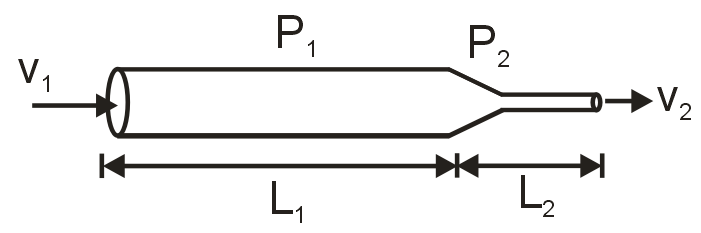 Select the correct option for the adjoining situation in which liquid is flowing through a pipe of variable cross-section (P1, P2 represent pressure)