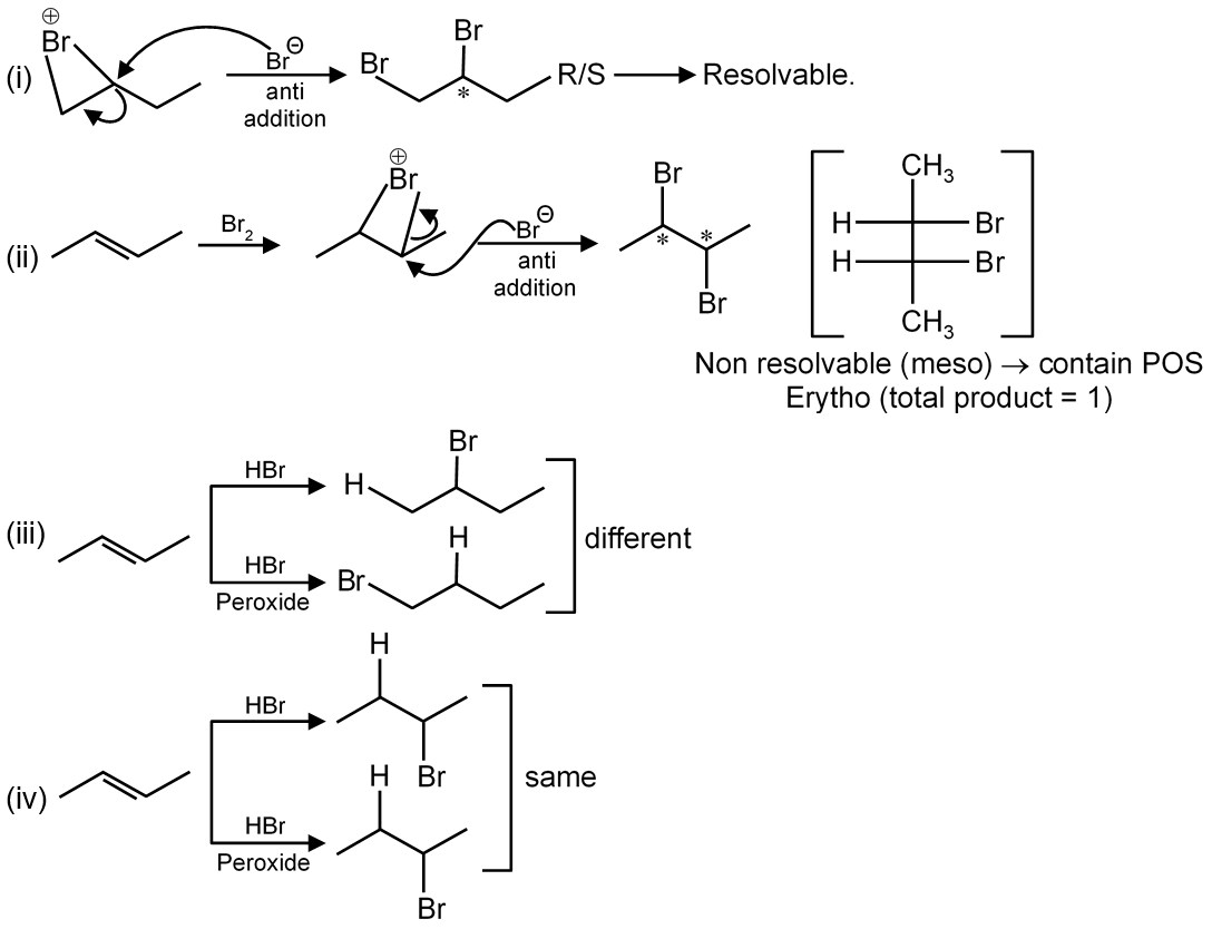 II gives non resolvable product with Br2 / CCl4