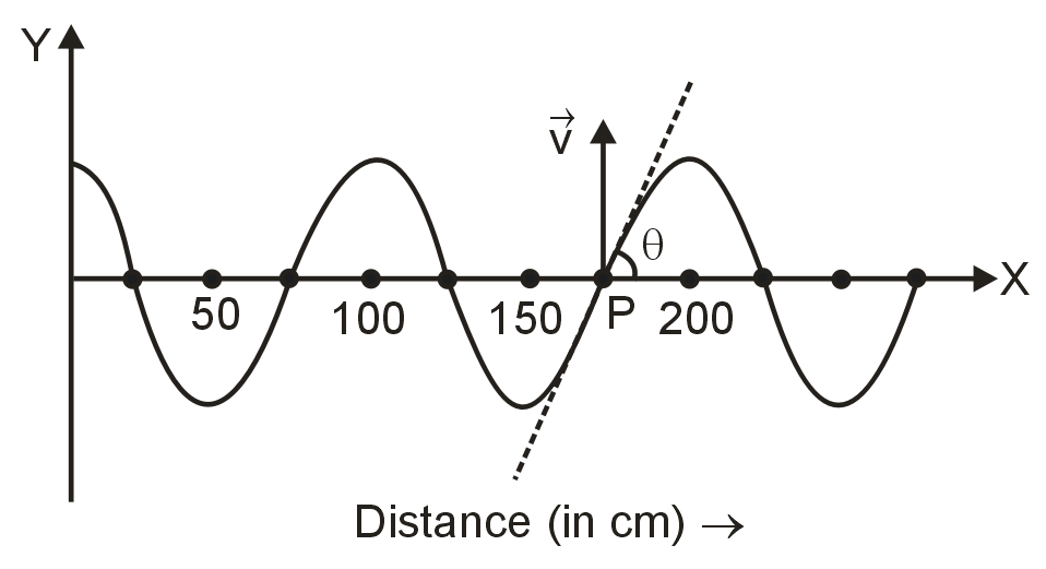 Shape of string transmitting wave along x - axis at some instant is as shown Velocity of point P is v = 4π cm/s and angle θ = tan–1 (0.004π)