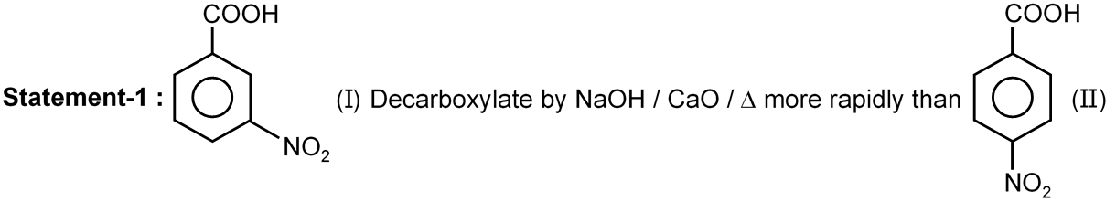 Statement-2 : Carbanion generated during reaction by I is more stable than carbanion generated by II due to –I effect of –NO2.