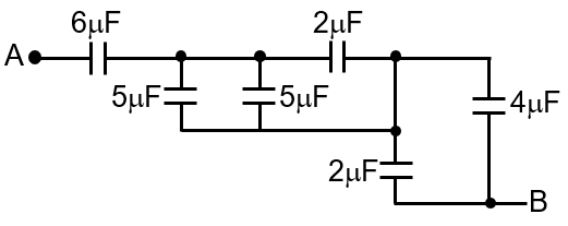 The equivalent capacitance between A and B in the circuit given below, is :