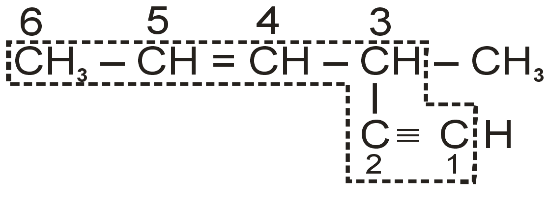 The IUPAC name of the compound is :- 3 - Methylhex - 4 en - 1 -yne