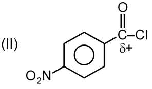 As δ+ increases, reactivity with G.R. increases. (II) > (III) > (I)