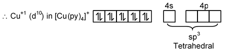 (Note: py = pyridine Given: Atomic numbers of Fe, Co, Ni and Cu are 26, 27, 28 and 29, respectively)