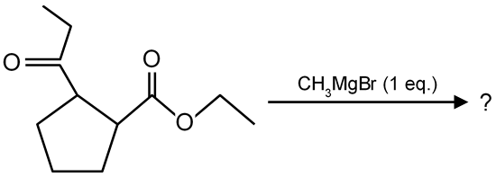 Ketone is more reactive then ester toward CH3MgBr