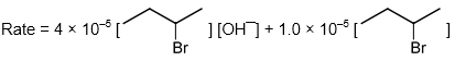 The rate law is: rate = k[2-bromobutane] + k'[2-bromobutane][OH⁻]. This shows the reaction proceeds via two simultaneous mechanisms: SN1 (first term) and SN2 (second term).