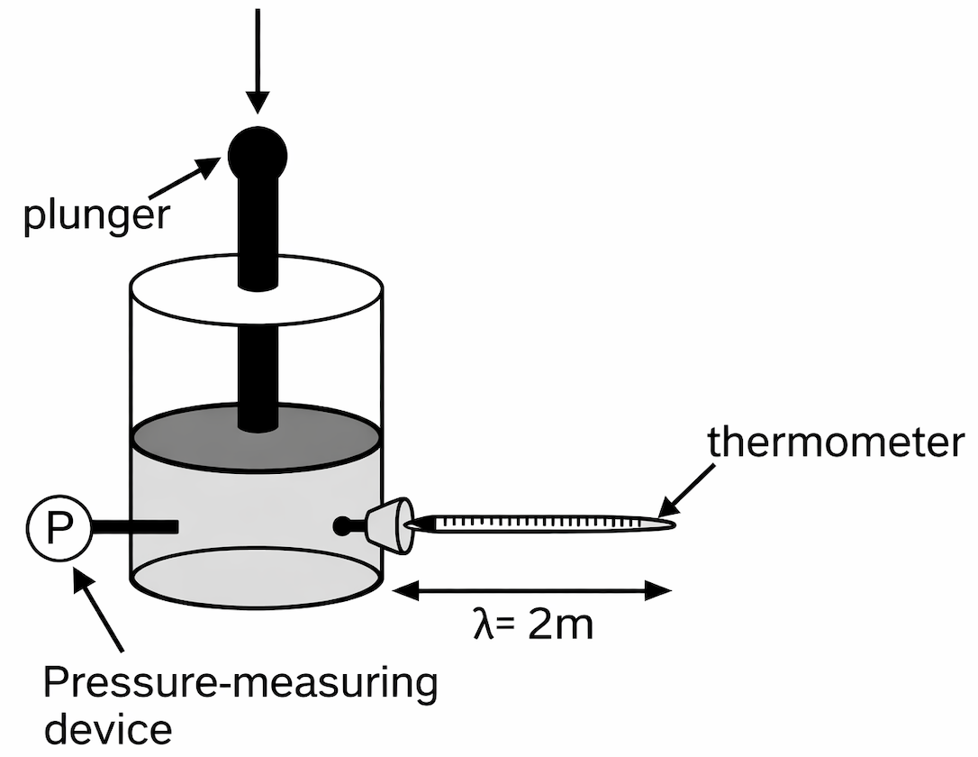 The relationship between pressure and volume of a gas was studied. A container was filled with helium gas at room temperature and sealed (see the diagram below). The pressure on the gas could be controlled by varying the force exerted on the plunger, and the volume could be determined by the height of the plunger.