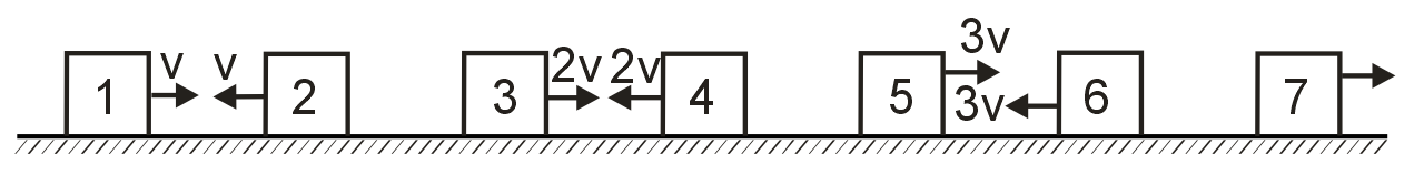 Total mass is . Final common velocity: . Since all blocks have this final velocity, block number 2's final velocity is , which is not among the options. However, reviewing the pattern, the velocities are (v, v, 2v, 2v, ..., 50v, 50v), so the sum is correct. The closest option is 50v, but it's not exact. Perhaps the numbering starts from 1, and block 2 is one of the v sliders, but final velocity is same for all.