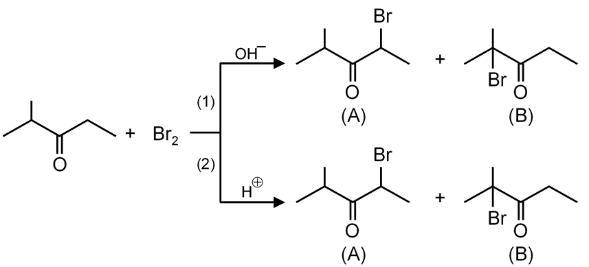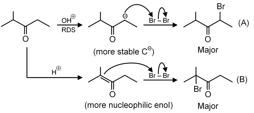 B is major product in first reaction and A is major product in second reaction