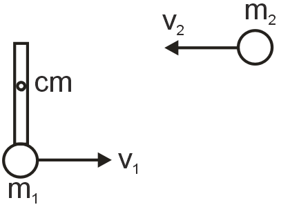 ∴ vcm towards left. and would not change. Total initial of system just before striking was in anticlock wise sense, so after striking also it would remain in the same sense